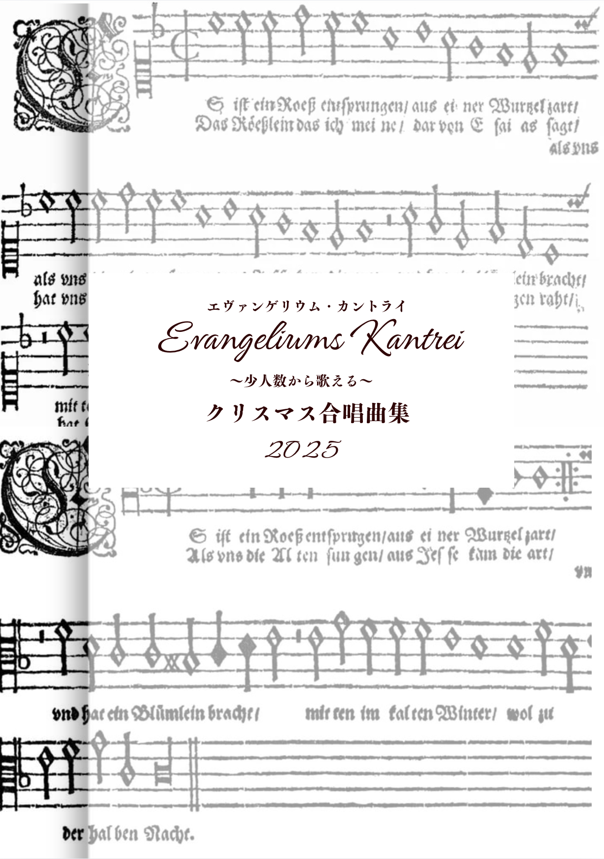 この合唱曲集は、カントライのクリスマス賛美レコーディング、コンサート奉仕などのためにまとめたものです。二声〜四声の曲が収録されています。